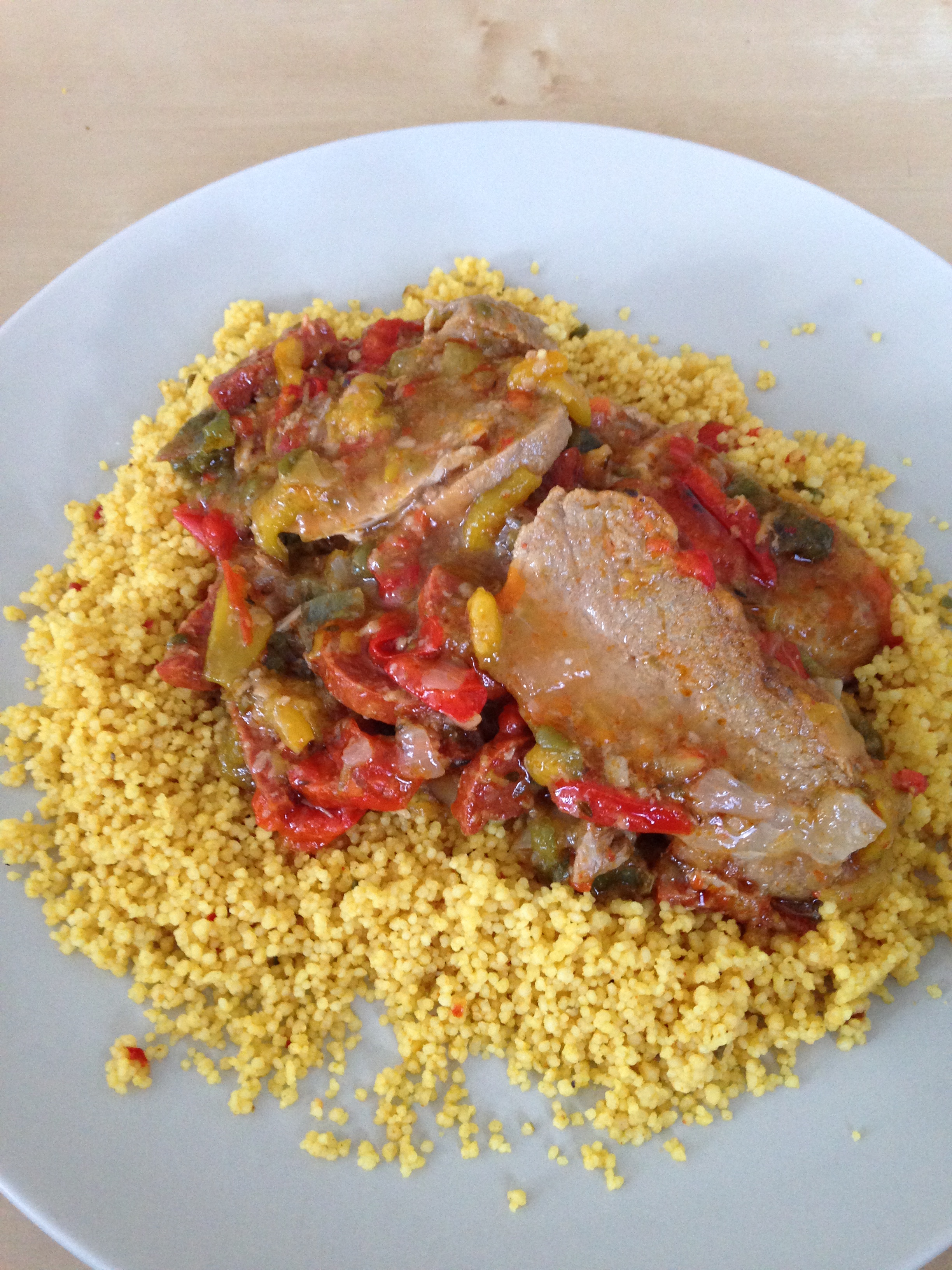 Nous avons accompagné cette recette de filet mignon poivrons chorizo oignons avec de la semoule épicée, un régal !