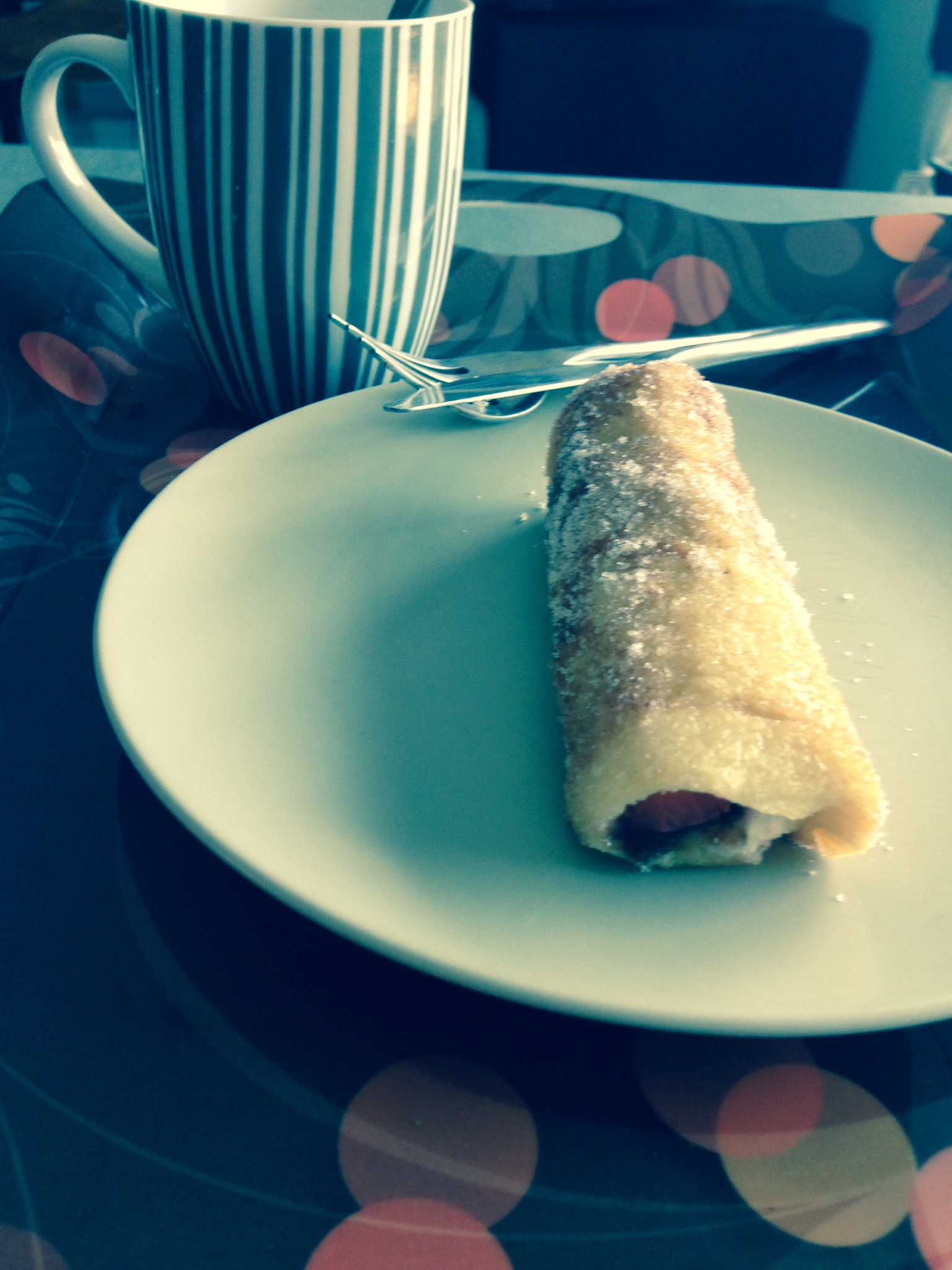 Voici donc une toute nouvelle recette que j’ai essayé aujourd’hui avec du Nutella et des fraises fraises : le pain perdu roulé ou les French Toast Roll Ups.