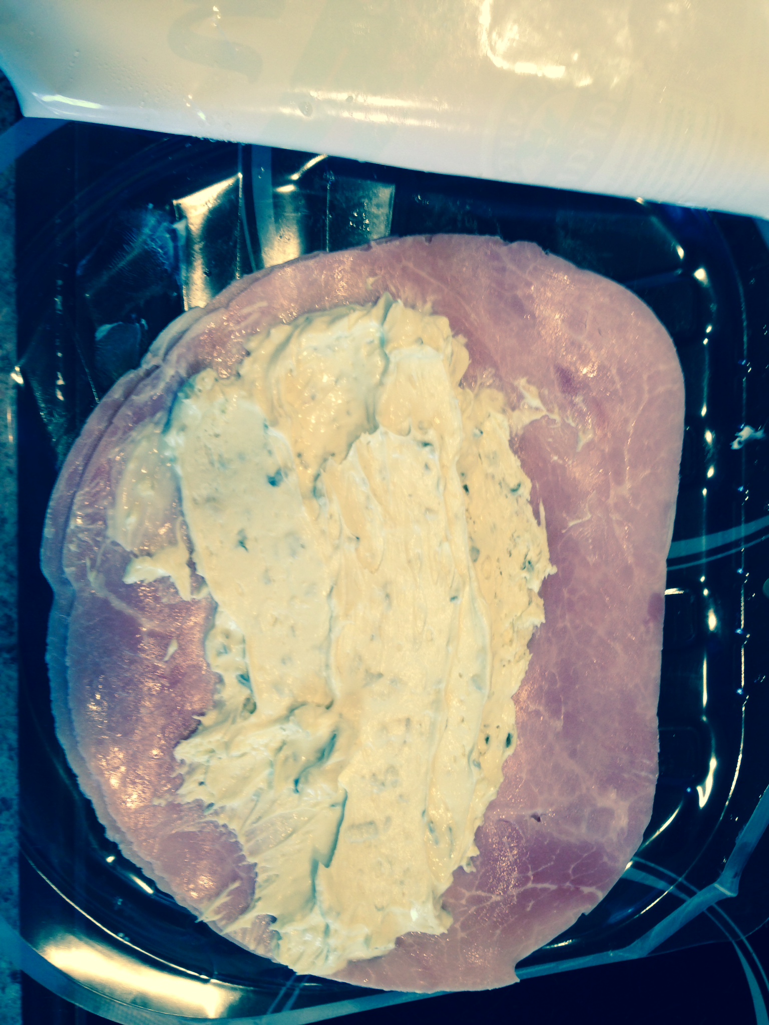 - Piquer chaque roulé de jambon au Boursin avec un cure dent