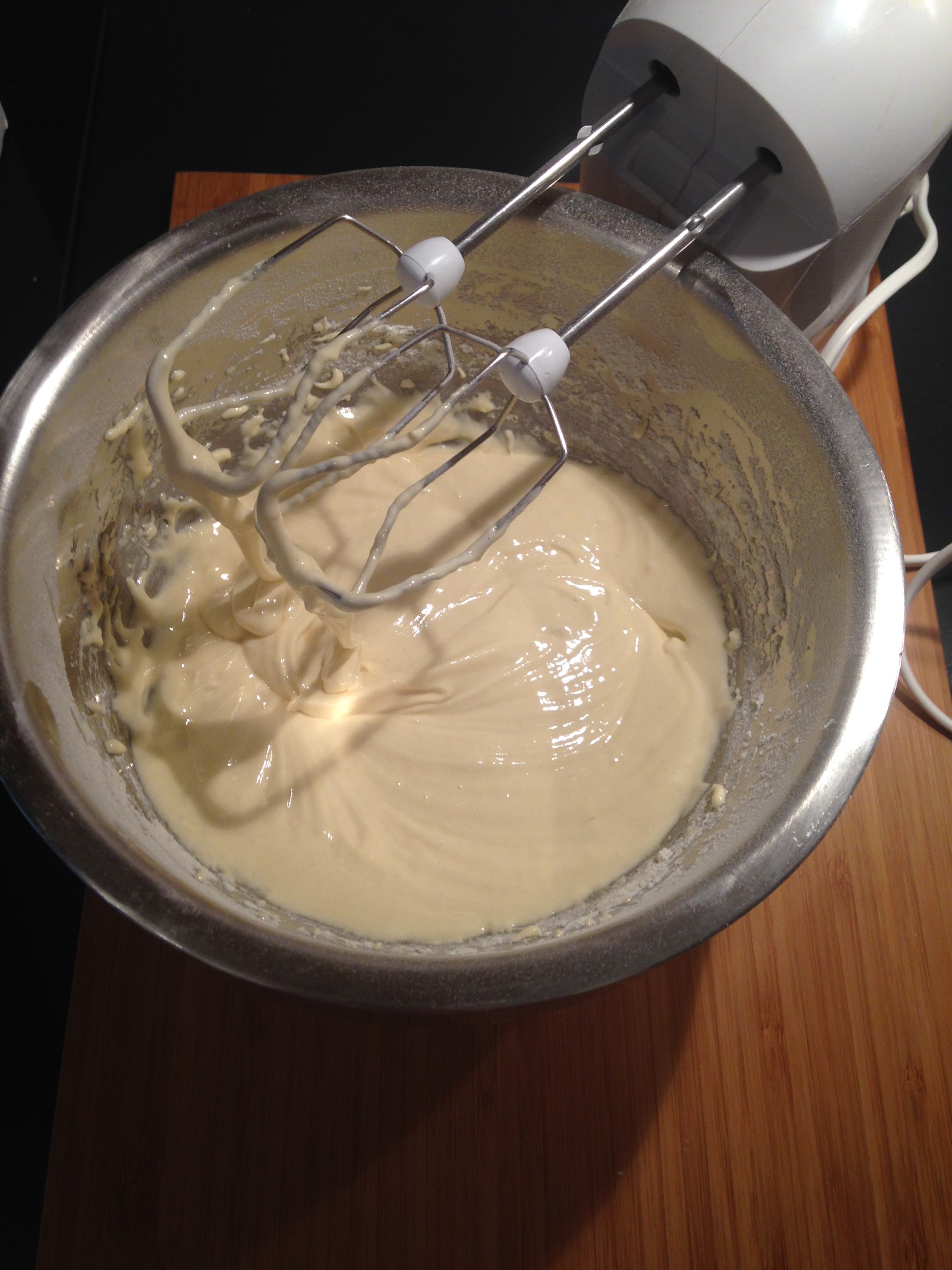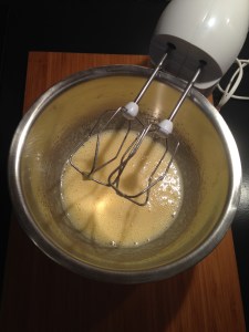 - Dans un cul de poule, fouetter les oeufs avec le sucre jusqu’à ce que le mélange blanchisse (cela prend quelques minutes)