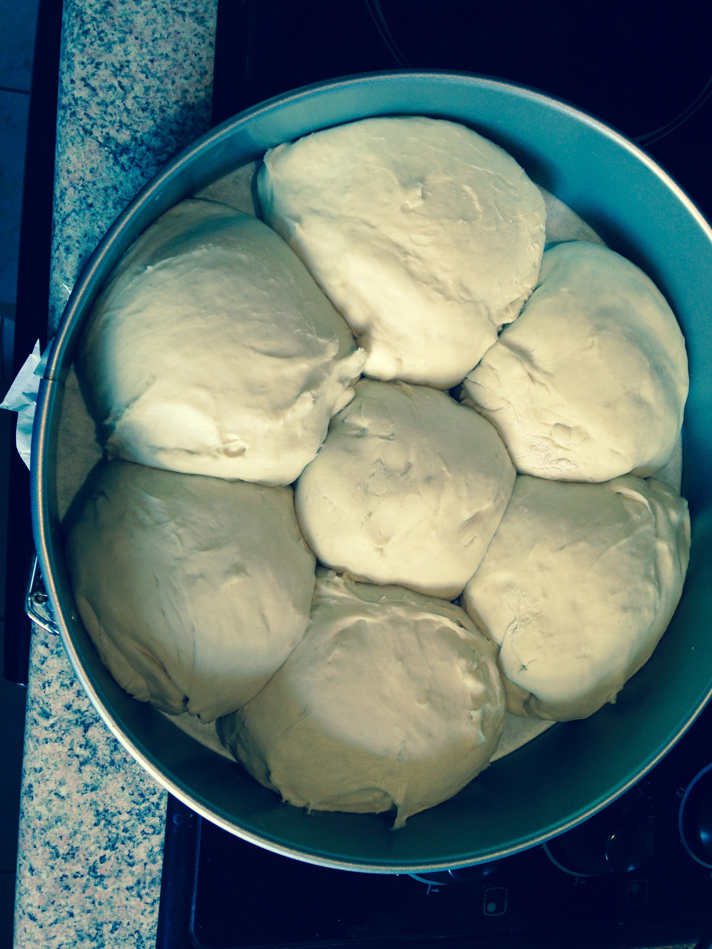 - Déposer du papier cuisson dans le fond d’un moule à manque et disposer les boules de pâtes (cf. photo sous la recette), vous obtiendrez alors une belle marguerite