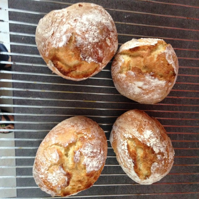 - Fariner le plan de travail, façonner 4 pains et les recouvrir de farine