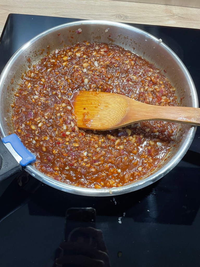 Cette recette est tirée de la série culinaire Netflix de Nadiya Hussain, que j’ai légèrement modifié, notamment en termes de quantité de piment et c’est déjà bien assez 😅. Ici on en raffole mais on n’a pas tenté pour les enfants ( 4 et 2 ans) trop épicé, je pense qu’il faudrait encore réduire la quantité de purée de piment par 2.