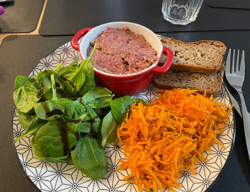 Aujourd’hui je vous propose une recette que je prépare régulièrement à la maison : le tartare de bœuf. Avec des frites, des potatoes aux four, des pommes de terres grenailles aux herbes de Provence, du pain nordique, et et une salade verte. On ne s’en lasse pas !