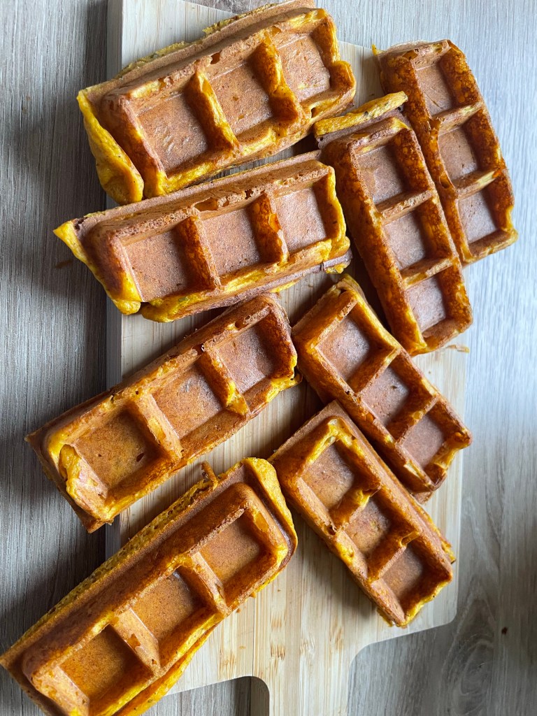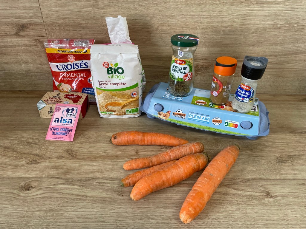 Aujourd’hui je vous propose une recette inspirée d’une recette cookidoo : mini gaufres carotte chorizo que j’ai adapté selon nos goûts ( pas de chorizo mais du cumin à la place, des herbe de Provence et de la farine t110)