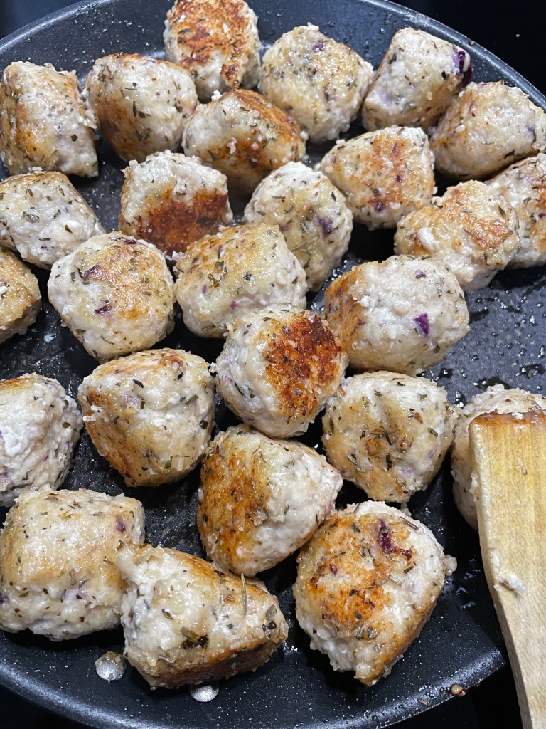 - Verser de l’huile dans je poêles et ça ire dorer a due moyen les boulettes de poulet parmesan herbes de Provence. Baisser le feu et laisser cuire une quinzaine de minutes
