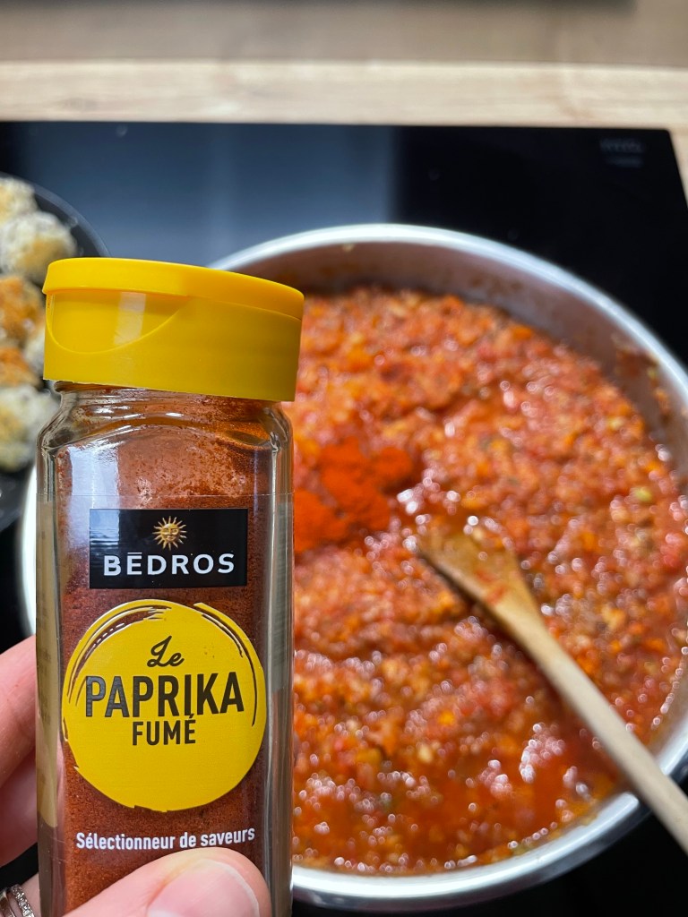 - 1 CC ( 2max) de paprika fumé ( je n’en mets plus mais vous pouvez remplacer pr un cube de bouillon de légumes)