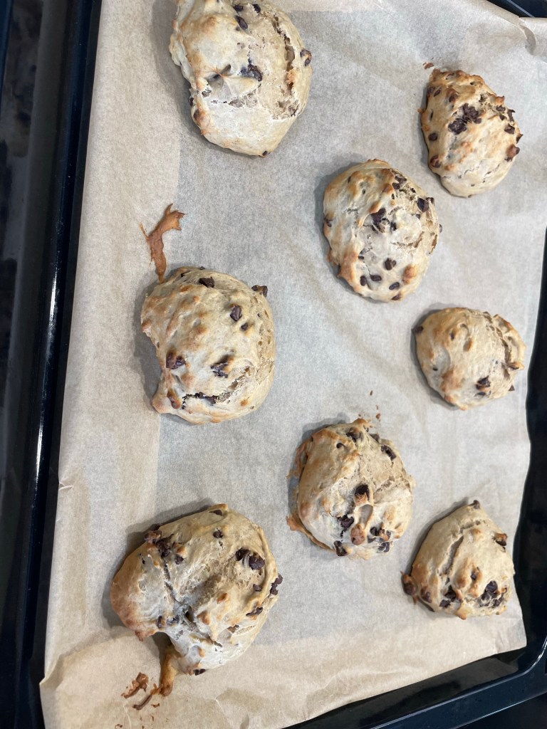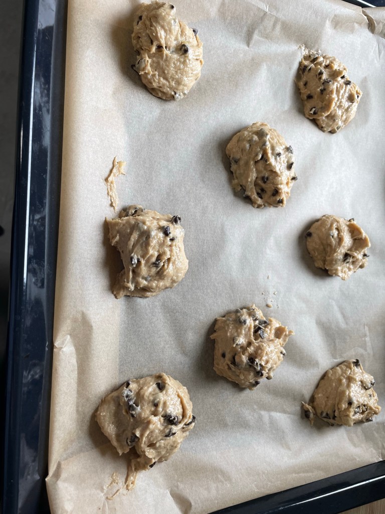 • Sur une plaque de four, recouverte de papier cuisson, former des tas a l’air du e cuillère à soupe ( 8 a 9 cookioches)