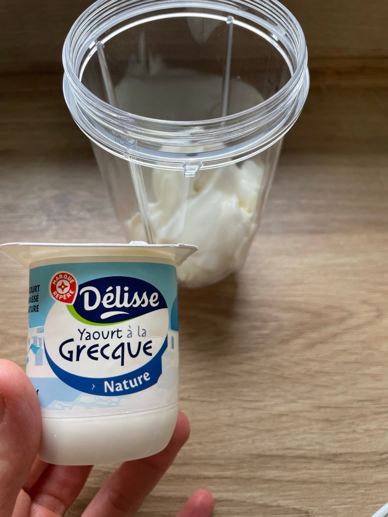 - 2 cuillères à soupe bombées de yaourt à la grecque ( a défaut Skyr, fromage blanc ou petit suisse)